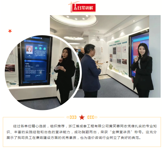 喜报丨黄笑蓉同志喜获杭州市建设工程招标造价行业廉政教育基地“金牌宣讲员”