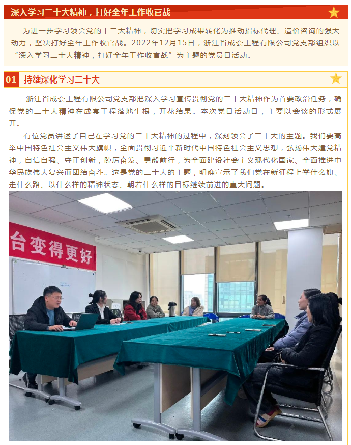 深入学习二十大精神,打好全年工作收官战之成套工程12月固定主题党日活动